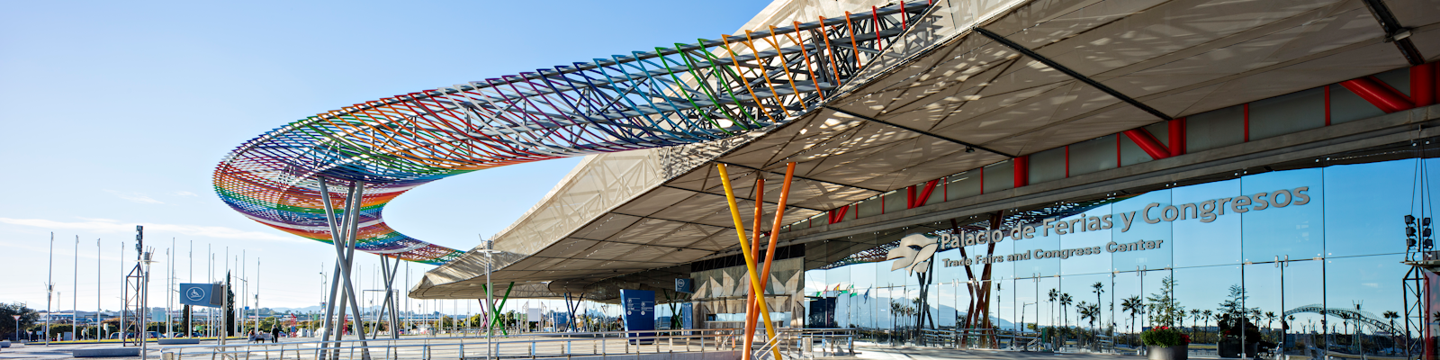 The Trade Fairs and Congress Center of Málaga, located in the capital of the Costa del Sol – the second most important communications and transport hub in Spain and the first in the south of the country – is located next to the motorway that joins the ring roads of Malaga with the Mediterranean Motorway.